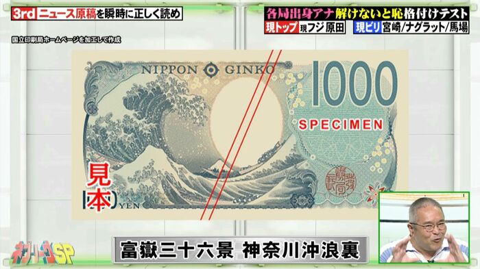 新紙幣の1000円札の裏面に描かれた浮世絵の作家の名前「葛飾北斎」を答える問題では、紙幣の図柄がどうやって決まるのか、村瀬先生が解説しました。