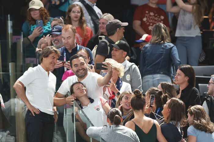 トム・クルーズさんがパリ五輪で最初に目撃されたのは、現地時間7月27日に行われた競泳の会場。