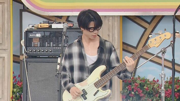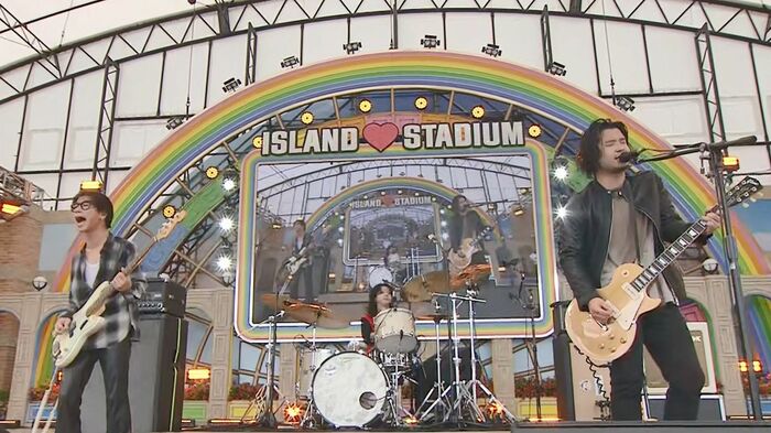 立て続けに『ナイトタイマー』で、汗を飛ばしながら熱い演奏を見せる3人。終盤にヤマグチさんがステージ上に立つめざましくんにマイクを向けるお茶目さも見せます。そして続く『スピード』をめざましくんの声マネ(?)で紹介。タイトル通りスピード感ある楽曲でさらに高まる熱気。