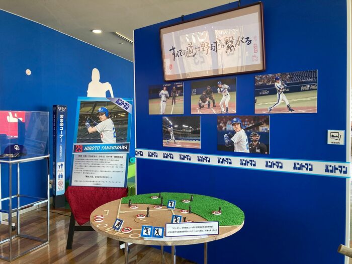 ブースには、鈴木さん着用アイテム以外に、巨大な野球盤、「BUNTMAN」の銅像、「すべての道は野球に繋がる」と書かれた額縁など、ドラマの小道具も多数展示されています。
