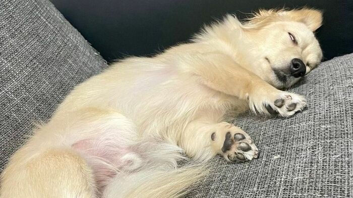 遊び疲れてしまい、白目を見せて寝てしまうことも…。