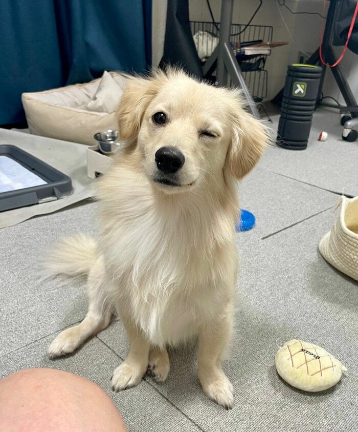 飼い主によると、普段からたまに目が気になるのかウインクをしている時があるそうで、写真を撮ったら偶然ウインクをしていたとのこと。