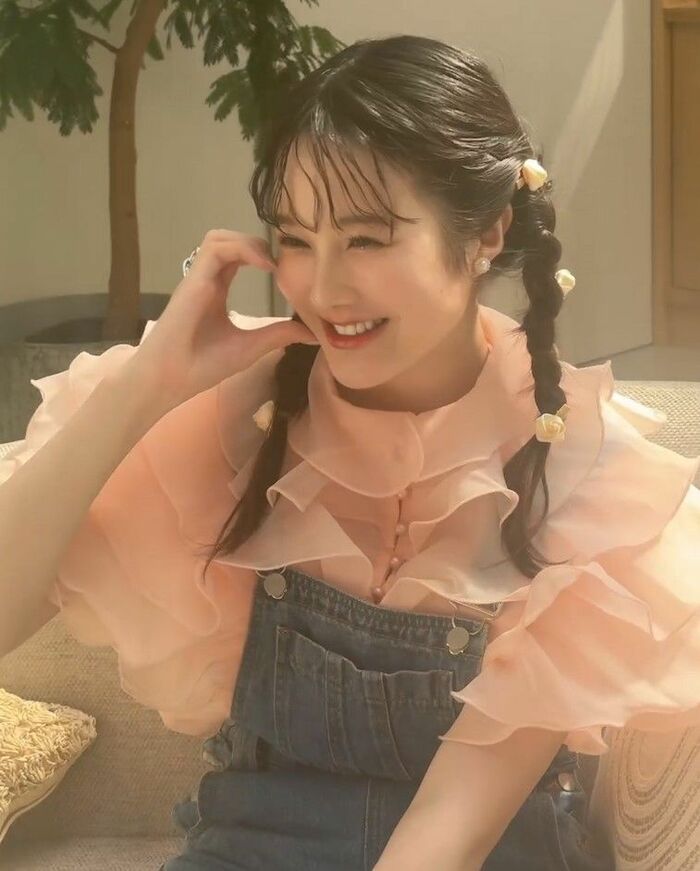 そして、ピンクの大きなフリルが付いたブラウスにデニムをあわせたショットなど、さまざまな表情を見せる本田さんが公開されています。