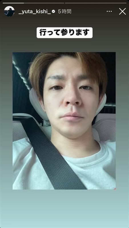 前髪が分かれたヘアスタイルの岸さんは下からのアングルで撮影し「行って参ります」と投稿しました。