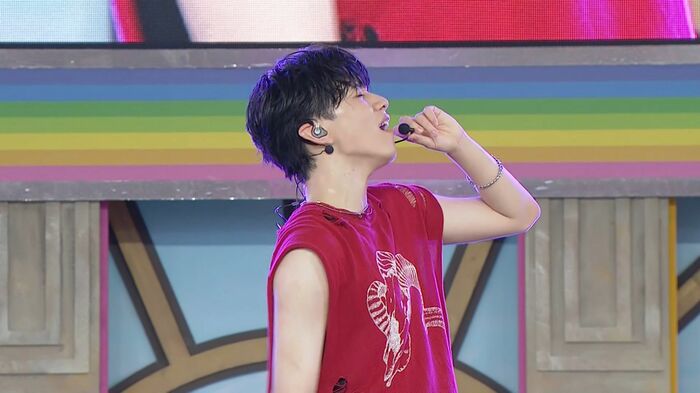 「めちゃくちゃ盛り上がれる曲なので」と、サビの部分の振りをレクチャーして、『Be Alright』へ。ステージを縦横無尽に移動しながら、手に持っためざましくんを振り上げて会場を沸かせ、息の合ったコールアンドレスポンスで盛り上がりも最高潮に。