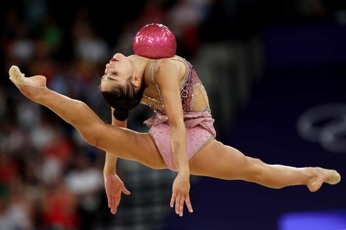 ボールの演技中に撮影された写真を見てみると…「頭はどこ!?」と思わず言ってしまうような衝撃の1枚。