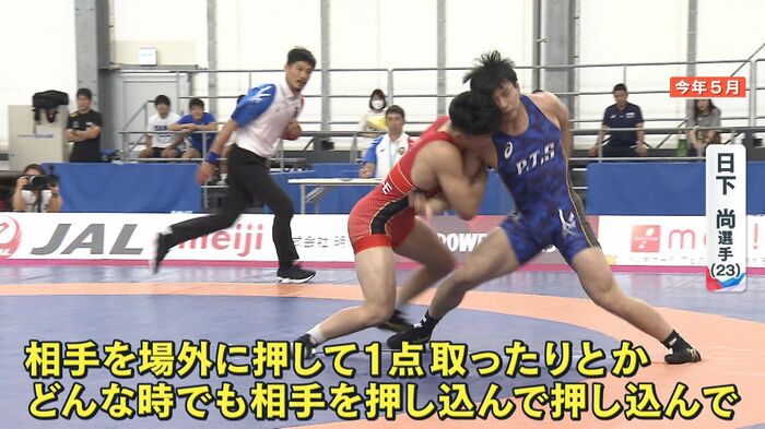 日下選手の持ち味といえば、ひるむことなく前に出て、相手を場外に出し、ポイントを取っていく戦い方。今年5月に行われたインタビューでは、自身のレスリングの特徴についてこう話していました。
