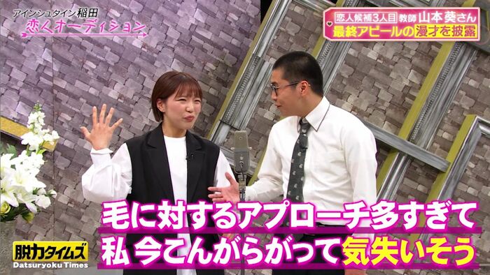 アピールタイムでは、なみさんが相方・玉遥香さんと“彼氏”に関する漫才を、山本(まめ)さんが相方・いけがやさんと“毛”に関する漫才を披露。
