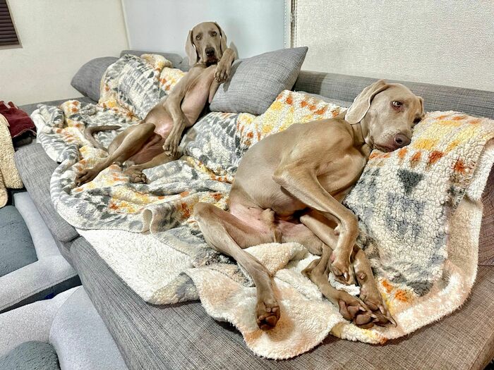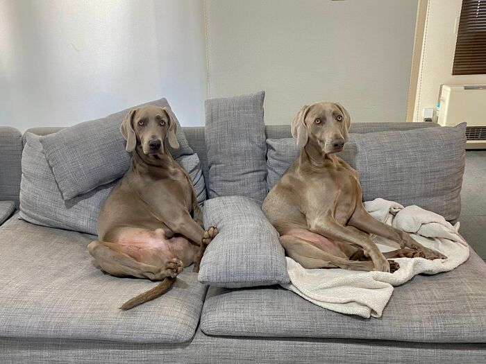 ある日の写真を見ても、2匹ともソファにもたれかかった姿は、まるで家でくつろいでテレビを見ている人間かのよう。