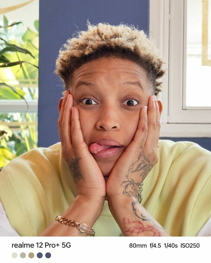ほっぺたに手を添え舌を出すキュートな姿など、試合中とは違った雰囲気の“素顔”を垣間見ることができます。