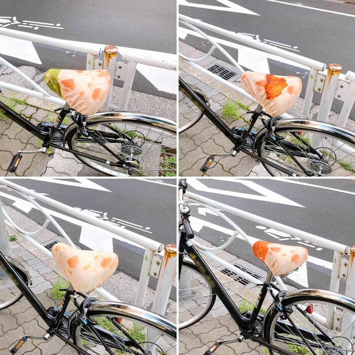 投稿者によると、このサドルカバーは東京都内のカプセルトイ専門店で発見し、一目見た瞬間、サドルをナンにするという発想に衝撃を受けてゲットしたといいます。