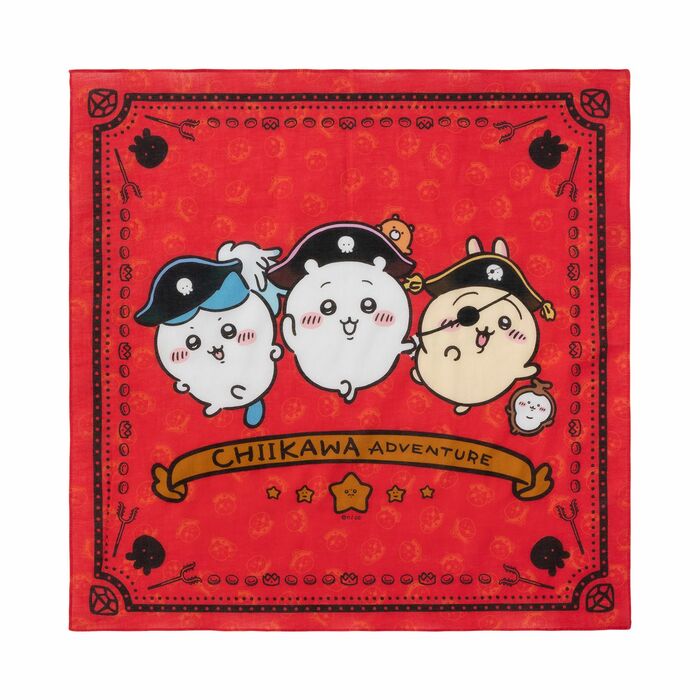 赤いカラーの布に海賊帽を被ったちいかわたちがデザインされた「バンダナ」(1430円)は、ハンカチとして使ったり、日頃のファッションに加えたりなど、さまざまな用途で使うことができます。