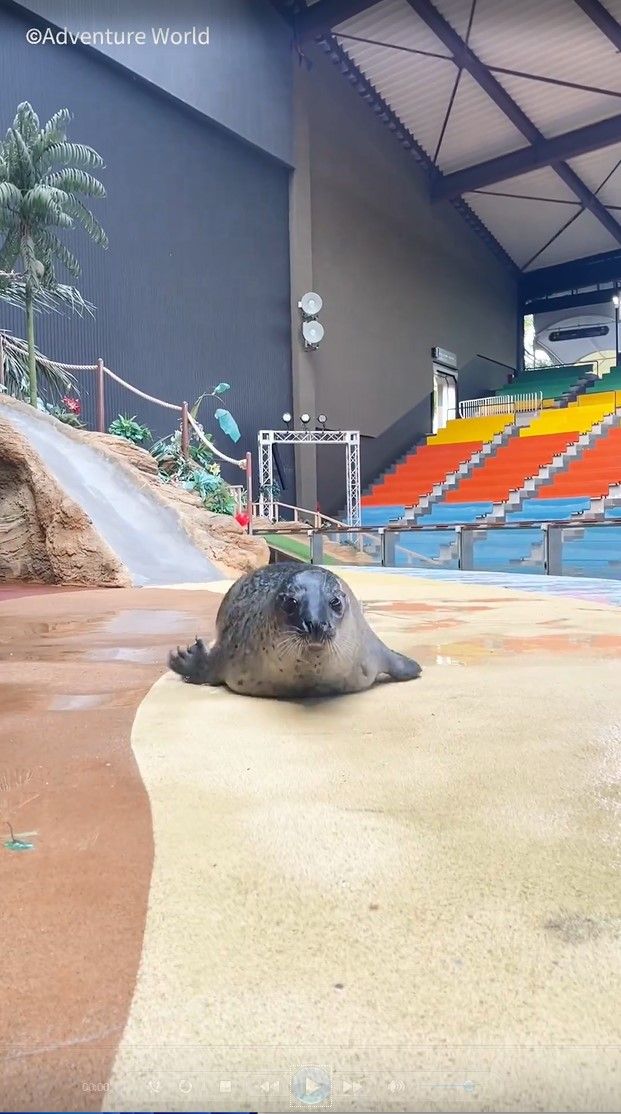 伊勢シーパラダイス担当者:バズった動画のアザラシが伊勢シーパラダイス生まれのアザラシだった為、アドベンチャーワールドさんに連絡したところ、同じ内容での投稿の許可をもらい投稿しました。
