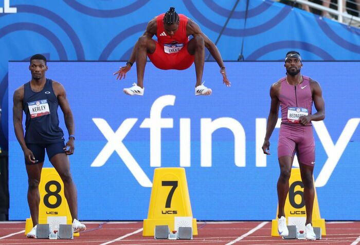 日本時間8月5日に行われたパリ五輪・陸上男子100m決勝、9秒79秒で金メダルを獲得したアメリカのノア・ライルズ選手。ライルズ選手が出走前に衝撃のジャンプを披露しました。
