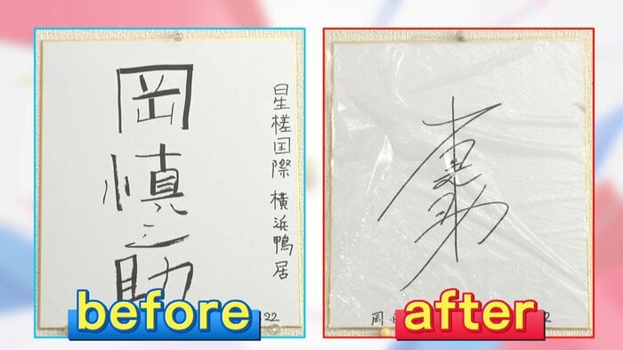毎回書かせているところで、鍵山と一緒にボード(黒板)で鍵山が岡のサインを考えた