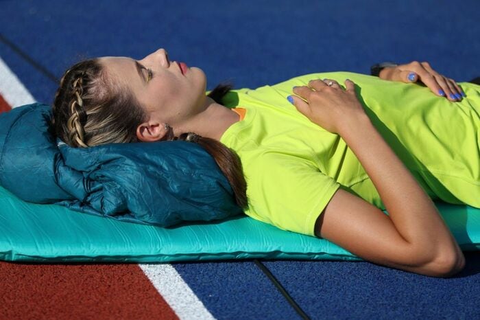 今年6月にスウェーデンのストックホルムで開催されたダイヤモンドリーグでも寝袋のようなものを枕にしながら眠る様子が激写されていました。
