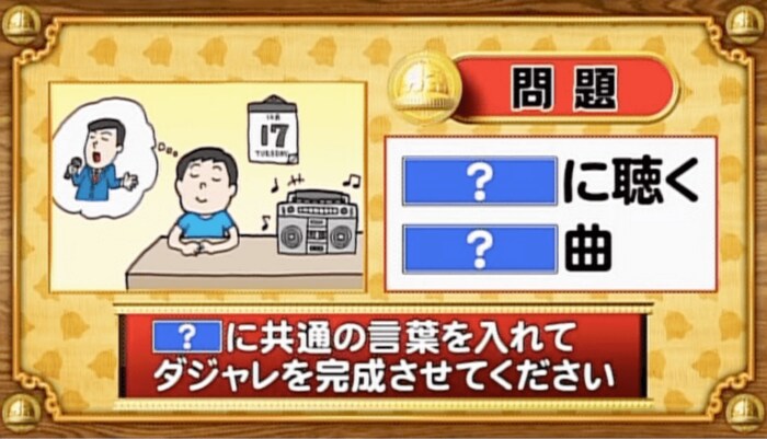「[?]に聴く[?]曲」。「?」に共通する言葉を入れてダジャレを完成させてください。