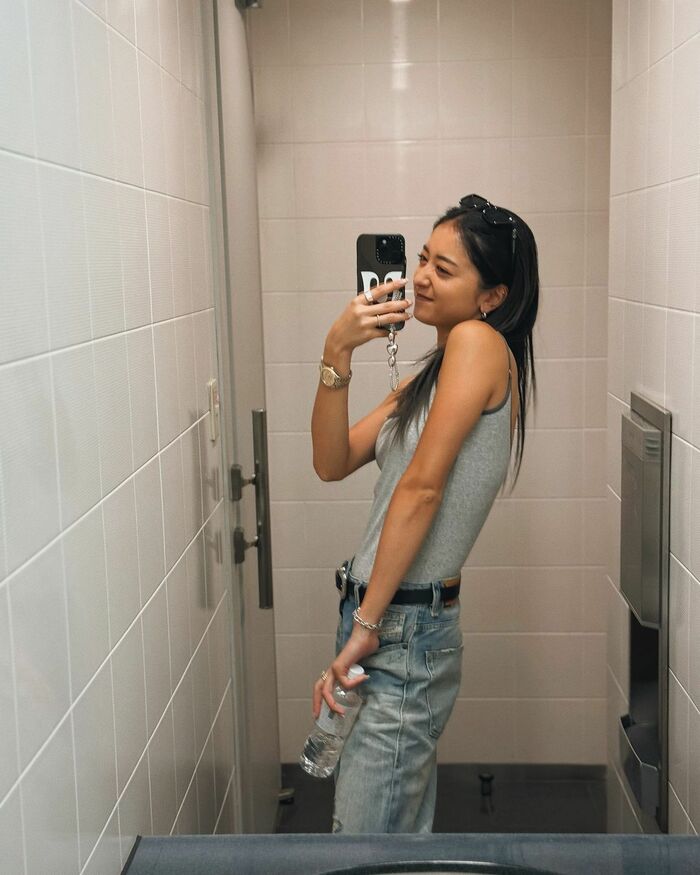 みちょぱさんは、「写真フォルダ見返してたら最近鏡越しで撮る率高すぎたから集めました 基本どこかのトイレかジムかで撮っております笑」と最近の写真事情について明かすとともに、複数枚の写真を公開しました。