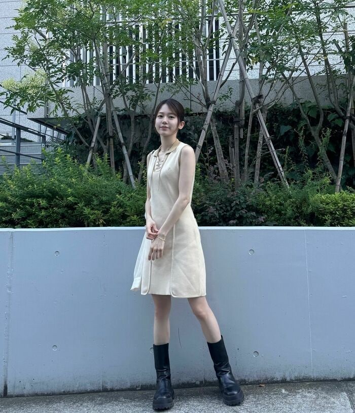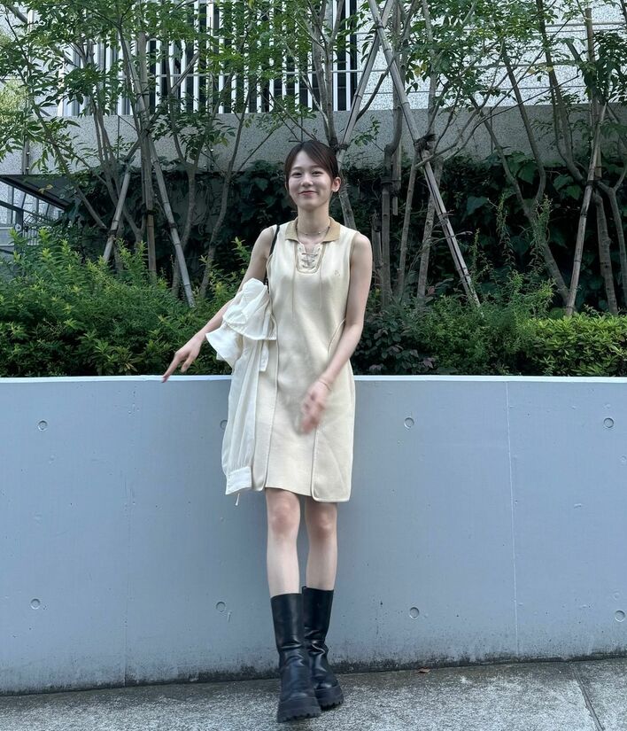 川口葵 お気に入りの黒ブーツ×ノースリミニワンピの私服公開!