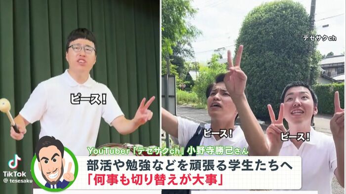 流行するきっかけとなったとみられる動画を投稿した、テセサクchの小野寺さんによると、部活や勉強などを頑張る学生たちに、「何事も切り替えが大事」だというメッセージを込めてつくった動画だといいます。