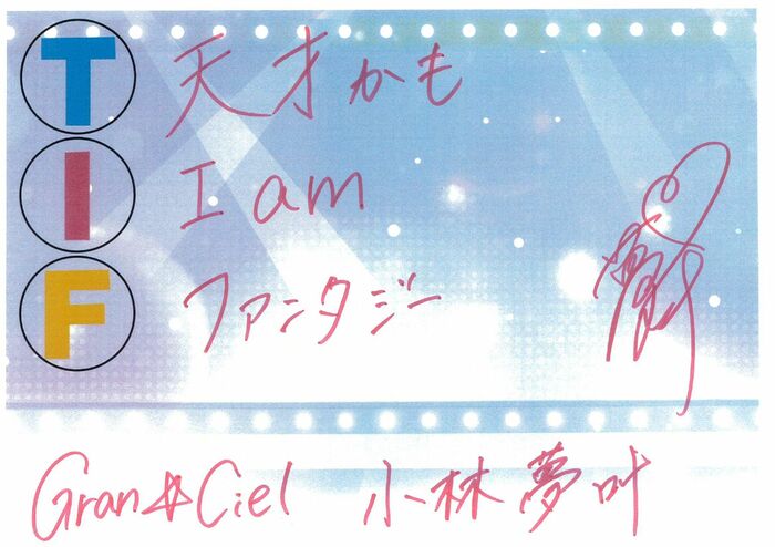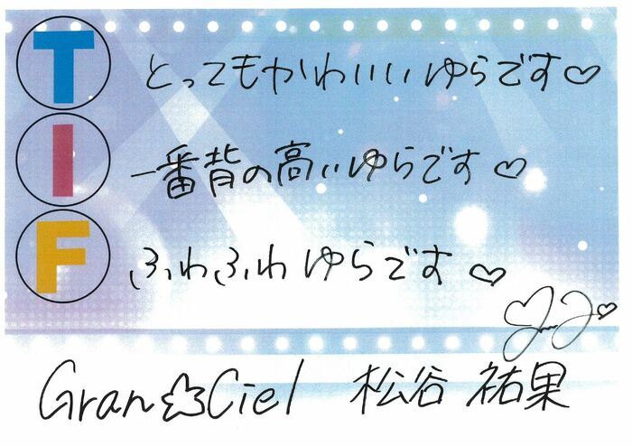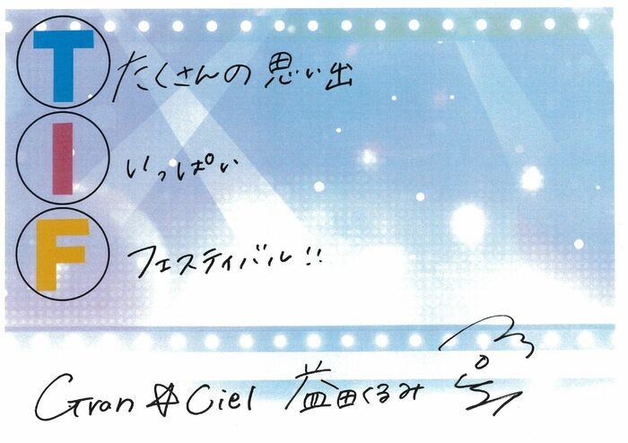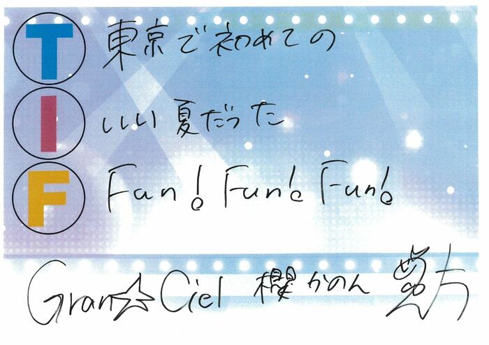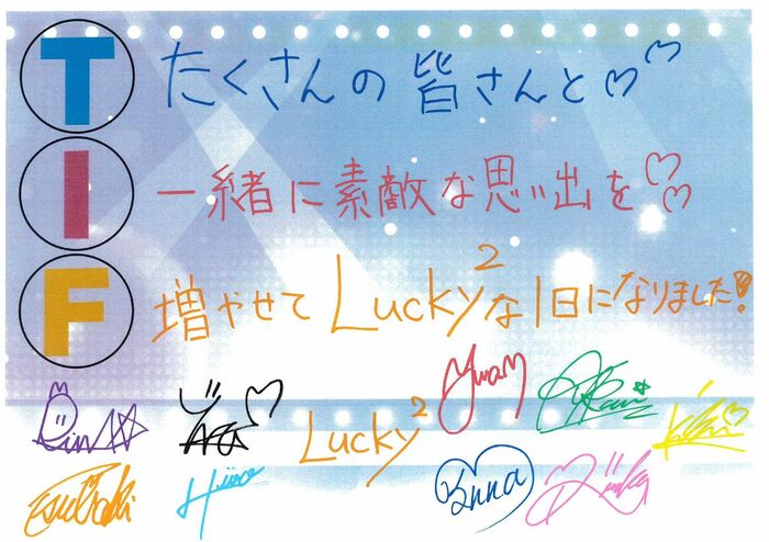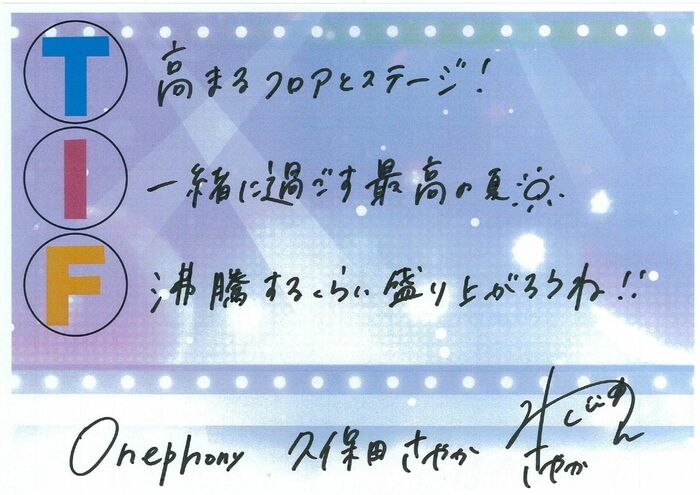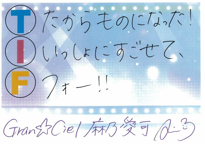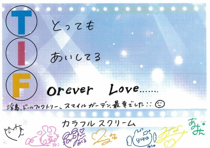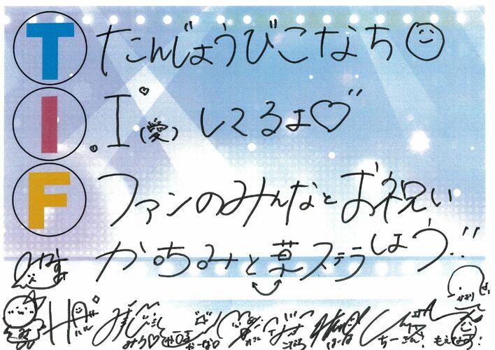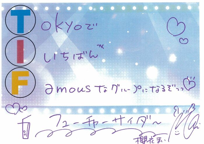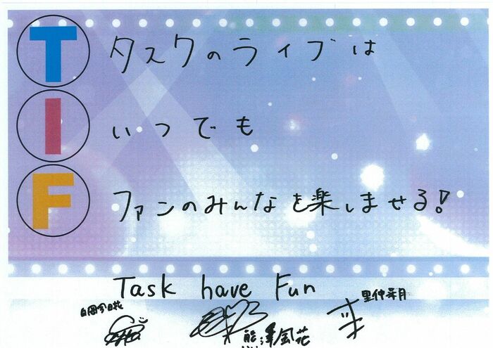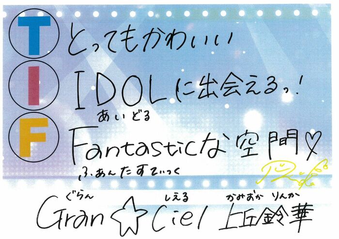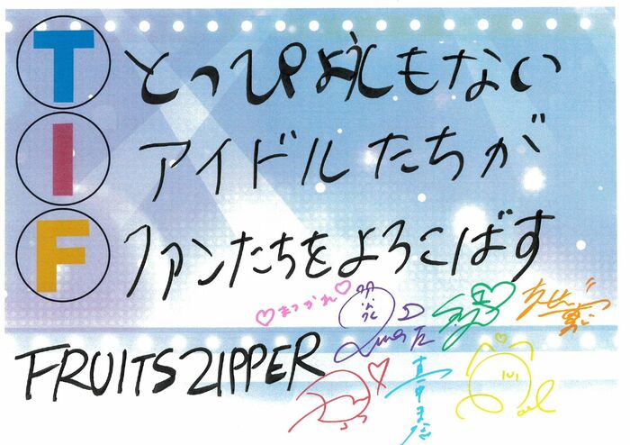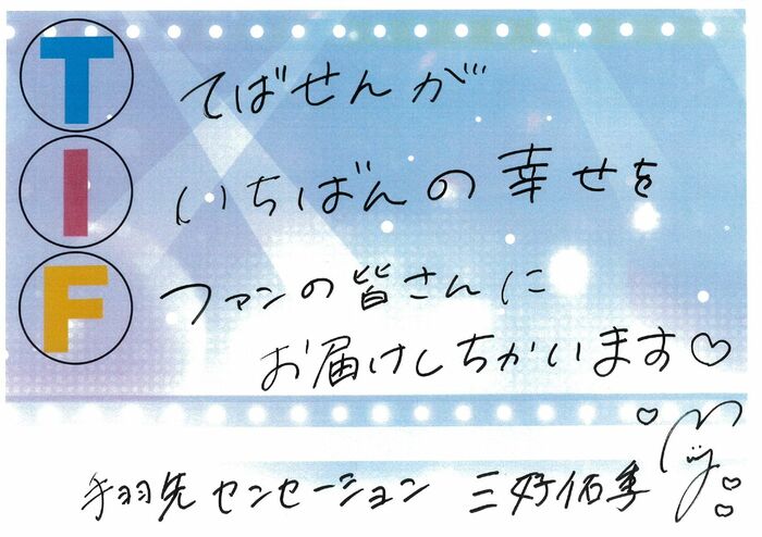 あわせて、“TOKYO IDOL FESTIVAL”の頭文字「T・I・F」を使った“あいうえお作文”でさまざまなメッセージをつづってもらいました。