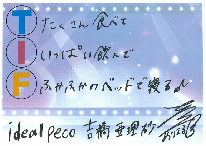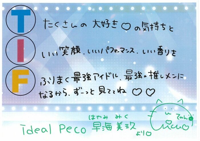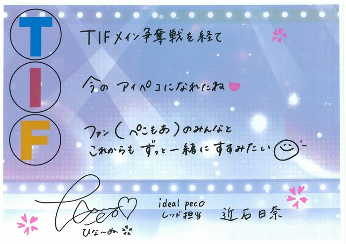 「F」・・・ファン(ぺこもあ)のみんなとこれからもずっと一緒にすすみたい