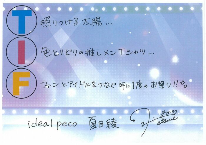 「F」・・・ファンとアイドルをつなぐ年に1度のお祭り!!
