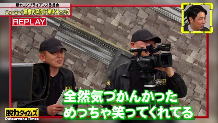 2人が現れると、屋敷さんは「それほど面識がない」と言いながらも「カメラないと、強盗です!お2人」とツッコミを入れ、キャスターアリタらは苦笑い。