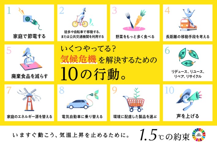 いま行動しないと温暖化が加速し、もっと暑い夏になってしまうことを、真夏の暑い時期に訴えるもので、国連が世界で気候危機を解決するために推進している「個人でできる10の行動」 (https://www.unic.or.jp/files/actnow.pdf)を多くの人に広めるのが目的です。