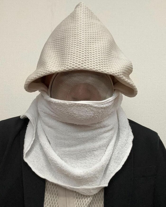 胸元までの写真ですが、口元は白いタオルで覆われ、すごい再現度です。