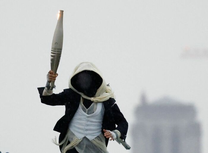 パリ五輪開会式 話題を呼んだ謎の聖火ランナーをものまね