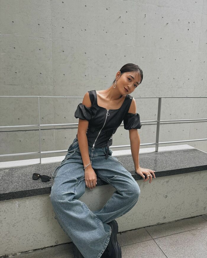 みちょぱ 小麦肌のデコルテ&デニムパンツスタイル披露