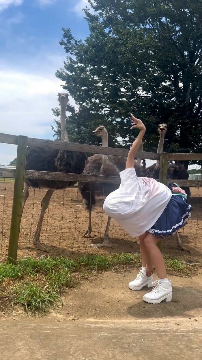 この投稿には「オモロ過ぎ!ダチョウとコラボしとるやん」「ダチョウも仲間なのか半信半疑で草」「スカートが羽みたいになってるのほんまポイント高い」などと、すでに5000を超えるコメントも寄せられ、さらに約71万のいいねと、約12万のリポストがされるなど前回の投稿を遥かに上回る反響を呼んでいます。(2024年7月29日時点)
