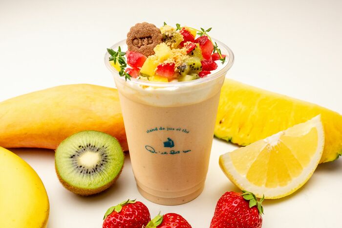 フランス語で「ジュース&ティースタンド」という意味の「stand de jus et thé (スタンド ジュ エ テ)」では、キルフェボンのタルトをイメージしたフラッペ 「Fruijus 〜フルージュ〜」や、フルーツとお茶を組み合わせた“モクテル”をイメージしたフルーツティー「Fruithé 〜フルーテ〜」などが楽しめます。