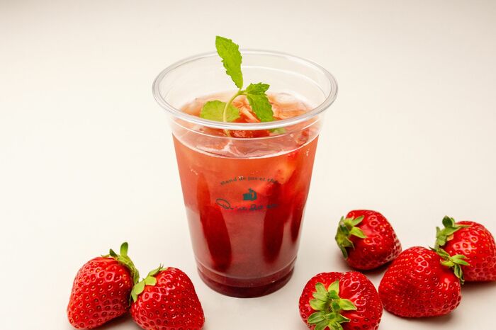 つぶつぶとしたイチゴ果肉の食感と、コクがありながらスッキリとした味わいが楽しめます。