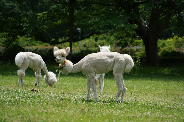 市川市動植物園で暮らしているのが、おはぎ、チャッピー、マシュ、もちち、ホイップ、メイプル。6頭のメスのアルパカたちです。