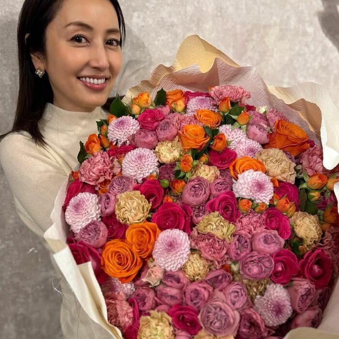 女優の矢田亜希子さんが、2024年12月24日に自身のインスタグラムを更新。前日に46歳の誕生日を迎えたことを報告し、花束を持った幸せショットを披露しました。