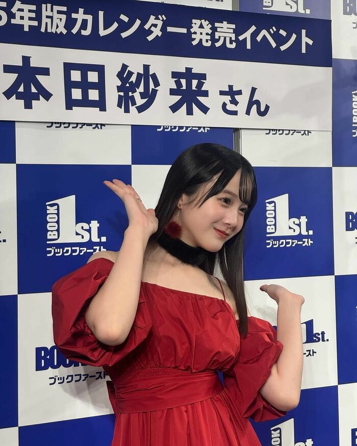 本田紗来 カレンダーイベントで赤いオフショルワンピース姿を披露