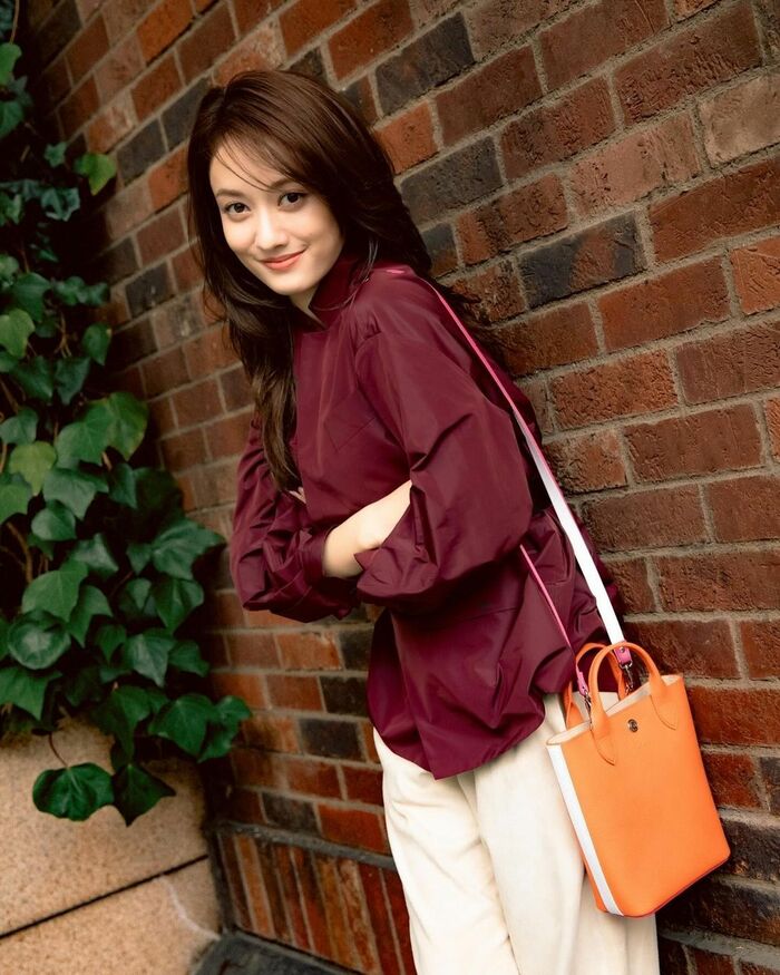 谷さんは、落ち着いた色味の大人なコーディネートで様々な表情のショットを披露しています。
