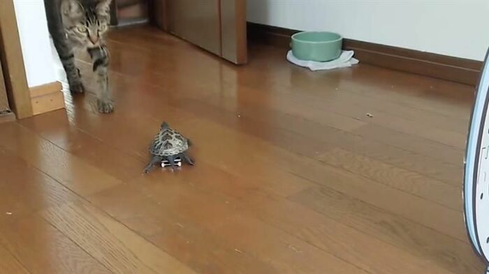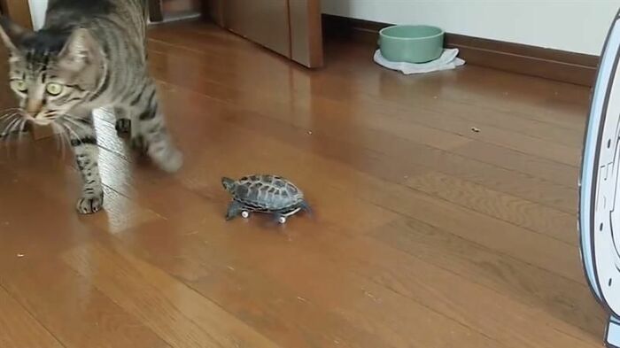 スケートボードを見事に乗りこなす軍曹くんの姿に、SNSでは「亀オリンピックスケボーやったら金メダルやね!」「堀米選手と対決しても勝てるかも!」「追いかける軍曹のスピード半端ない!」など驚きの声が寄せられています。