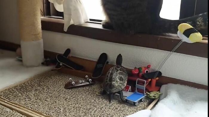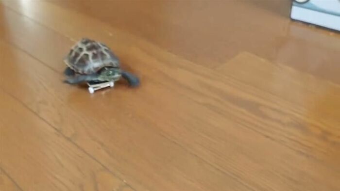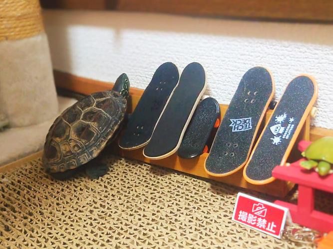 ちなみに、甲羅が重たく滑るため、板に自ら乗ることは出来ないようで、乗りたそうに触っていたら、飼い主が乗せてあげているといいます。愛用のスケートボードは、なんと7台もあるそうです!
