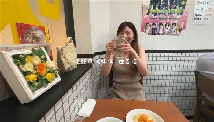 1件目のお店へ向かう道中では、すでにほろ酔い状態になっており、りこさんはカメラに近づいたり、ピースサインをしたりと、テンションが上がっていることがうかがえます。