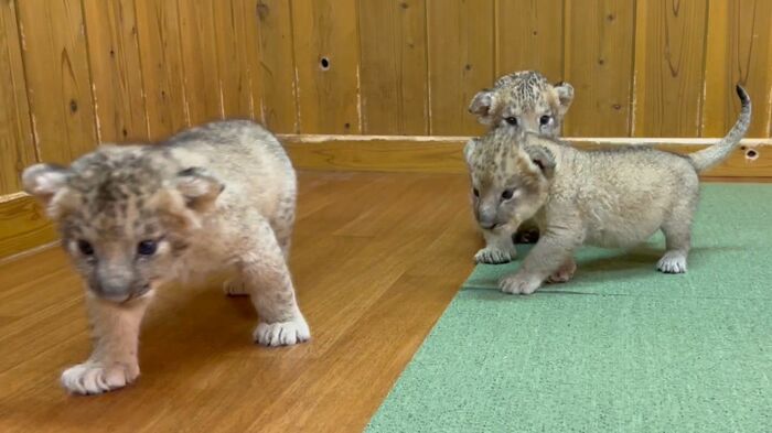 他にも、3頭のライオンの赤ちゃんたちで追いかけっこしている様子も!
