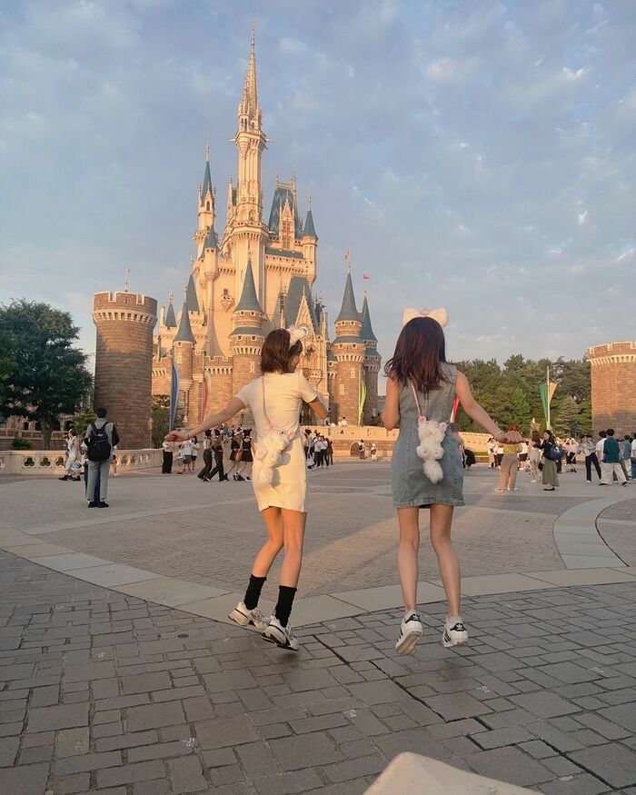 さらに、シンデレラ城前で友人と後ろ姿ながらも楽しそうな様子がうかがえる写真などが公開されています。