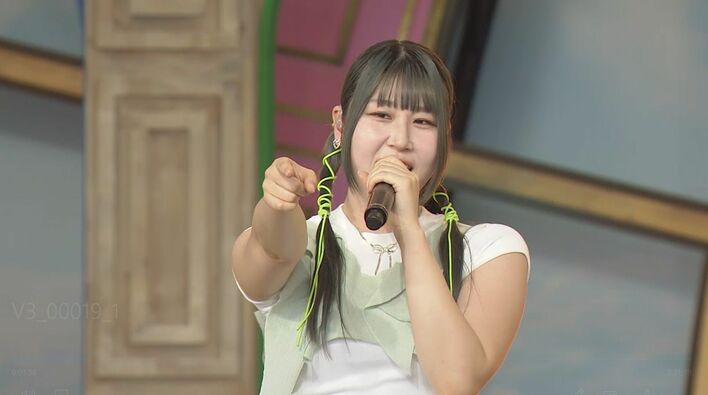 「めざましライブ、盛り上がっていけるかーい!」観客も手を振り上げて大声援
