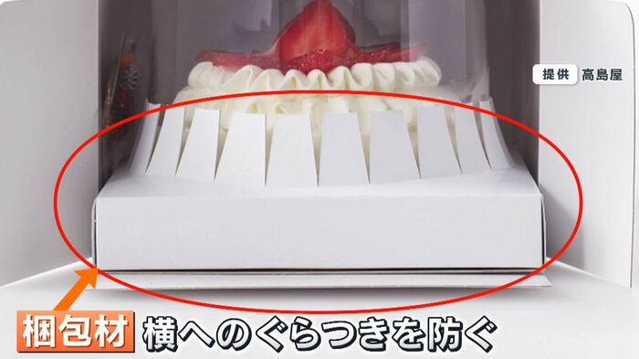 さらに、ケーキを梱包する箱も横へのぐらつきを防ぐべく梱包材を追加!
