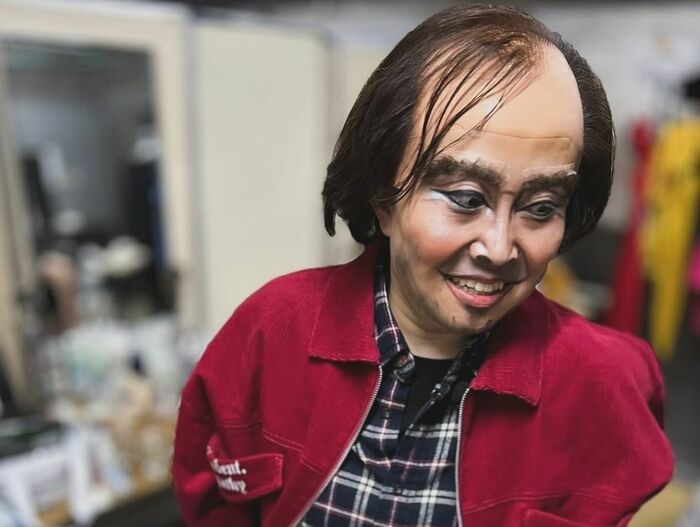 『FNS27時間テレビ』に出演した際に披露した、強烈な見た目の“9変化”ものまねの裏側を複数投稿しました。