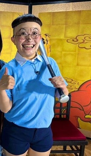 投稿された写真には、キンタロー。さんがテレビアニメ『サザエさん』のキャラクターである「中島」に扮して、バッドを持ってポーズを決めている姿や…