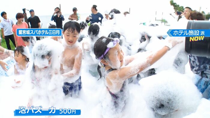 水が少し苦手でも安心して遊べる【泡バズーカ(500円)】など子供が楽しめる仕掛けがいっぱいです!