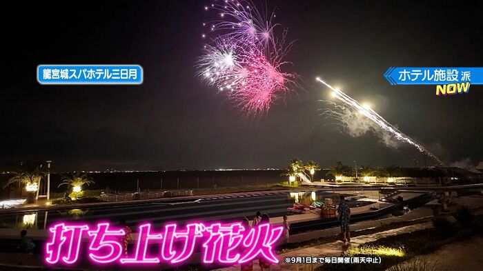 夜空を彩る打ち上げ花火。期間中(9月1日まで)は毎日開催。特別な時間を過ごせます。